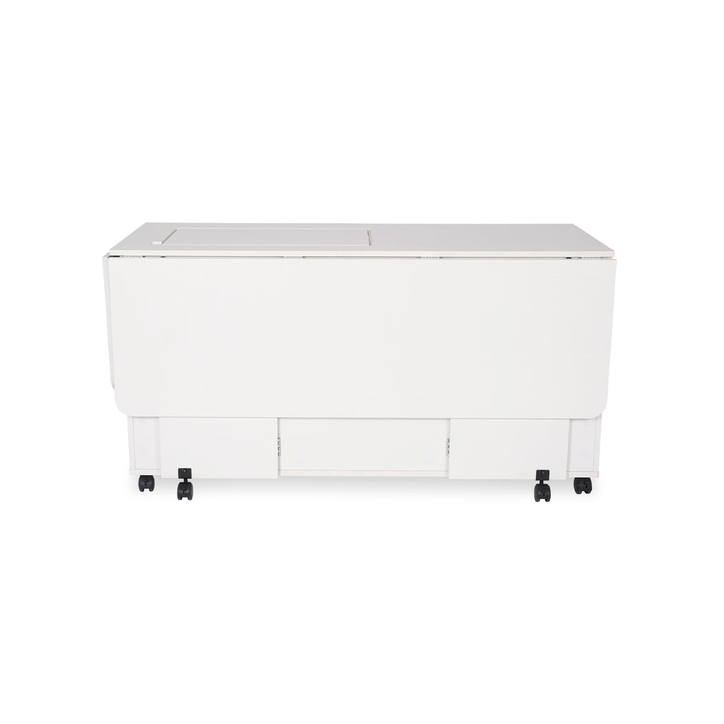 The Christa sewing cabinet was designed in collaboration with award-winning quilter Christa Watson. The Christa is a full-size sewing cabinet featuring a 2-position manual lift, 2 fold-out leaves and a drawer leaf for extensive work surface, and a home-friendly footprint when folded down.
