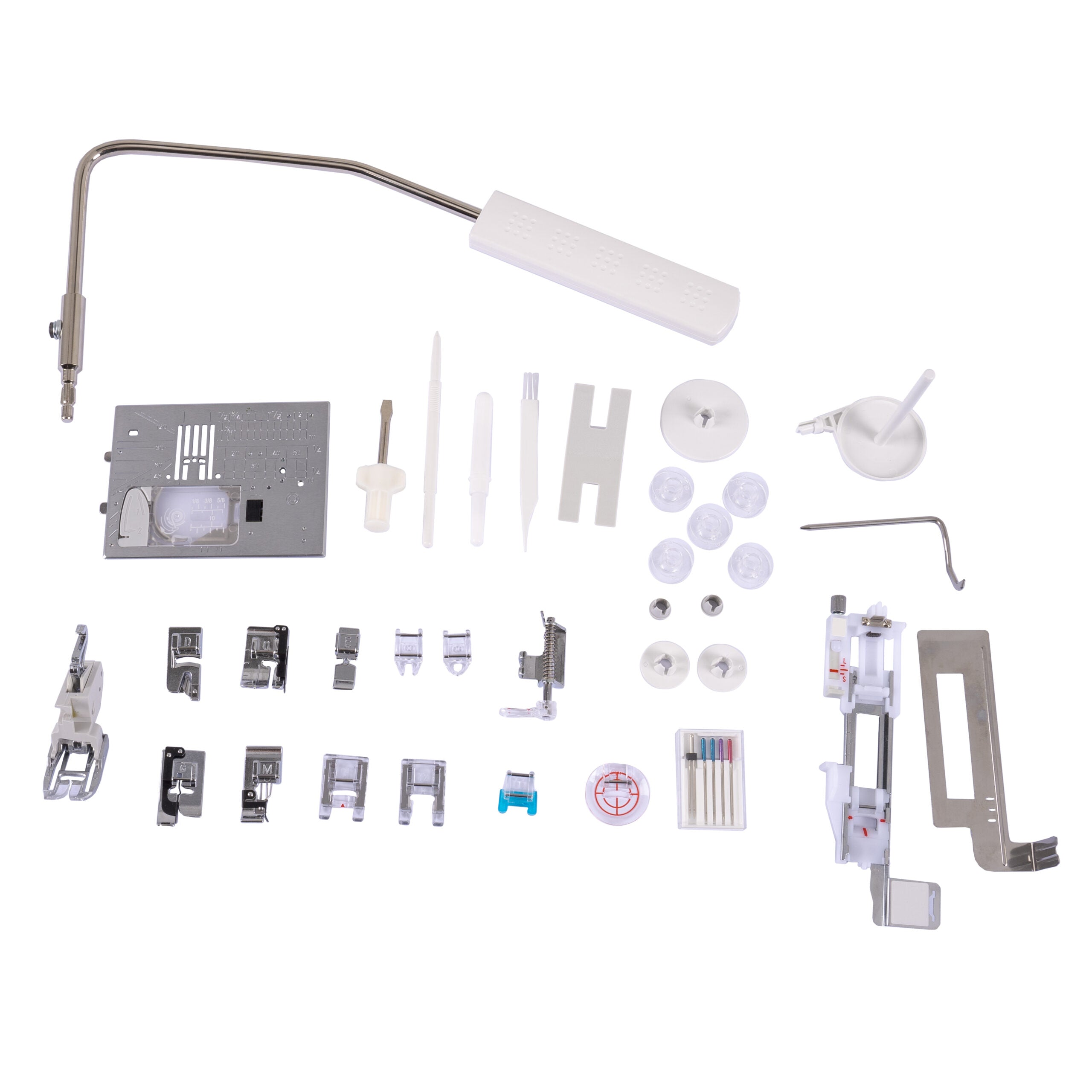 • Compatible with Accessories Listed for: Horizontal Rotary Hook, 9mm stitch width, High shank models with AcuFeed