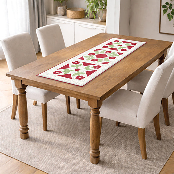 Decorate your table with beautiful table runners for each month of the year! The 2027 Table Runner of the Month Club program will provide you with the fabric to make one table runner top and binding provided in a keepsake box each month.