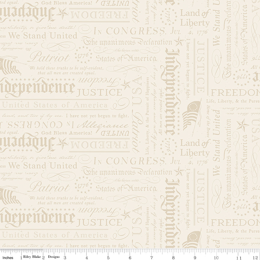 Independence by the RBD Designers for Riley Blake Designs is great for quilting, apparel and home decor. This print features images from colonial America and commemorates the 250th anniversary of the signing of the Declaration of Independence.