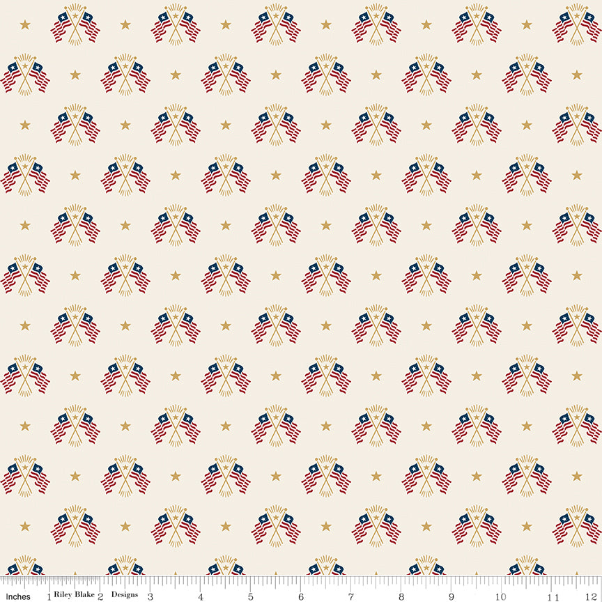 Independence by the RBD Designers for Riley Blake Designs is great for quilting, apparel and home decor. This print features images from colonial America and commemorates the 250th anniversary of the signing of the Declaration of Independence.